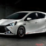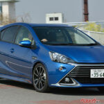 トヨタ アクア G’s(2013年登場)専用サスペンションで約25mmローダウン。ベース車と異なるグリルを持つフロント周りのデザインも特徴的