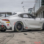 GT4マシンの開発を担当するTOYOTA GAZOO Racing Europeがモータースポーツの知見を活かし空力性能開発を担当。フロントスポイラー、カナード、スワンネック構造のリアスポはカーボン製。