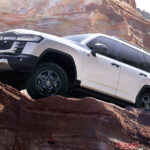 ランクル250は進化しているとはいえ4気筒だ。悪路走破性は非凡だが、ランクル300はその上をいく。特にE-KDSS装備のGRスポーツは、ストロークを充分に取ったサスペンションと相まって道なき道を安全に踏破できる実力を秘めている。