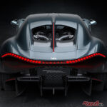 馬蹄型フロントグリルやボディサイドのC型モチーフ「ブガッティライン」などの伝統的なアイコンによる上品な佇まいを守りつつ、より低くなった全高や絞り込んだボディライン、高性能な大型リアディフューザーなど、より好戦的な雰囲気を強めた。もちろん、それらは最高速を極める機能でもある。