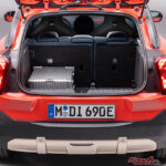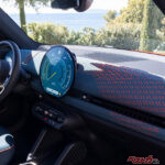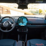 エクステリアデザインはミニのアイコン(丸形ヘッドライトなど)から脱却しているが、ダミーグリルの形状やプロポーションはミニらしさを演出。インテリアではダッシュボード中央の円形ディスプレイが最新のミニを主張している。