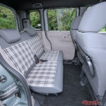 N-BOX JOYは新しいグレードで、シートと荷室をチェック柄に仕上げた。特に注目されるのが荷室だ。シートと同様の織物表皮を、成形同時接着と呼ばれる日本初の手法で荷室の床や後席の背面と貼り合わせた。