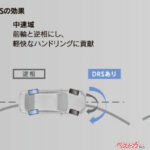 レクサスLSの「走行性能」と「乗り心地」向上に向けた、たゆまぬ進化の証の一端が、ラジエーターサポートブースの追加や、DRS(Dynamic Rear Steering)のAWD車への設定拡大など。2023年10月の一部改良の目玉となっている。