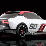 全長4100~4200mm程度の比較的コンパクトな2ドアセダンで、FRの内燃機関搭載車。「本当はマニュアルトランスミッションにしたいけど、現実的にはツーペダル」と、デザイナーの田井悟グローバルデザイン本部プロダクトデザイン部デザイン・ダイレクター。