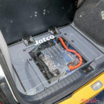 そして今回の第2弾取材会に姿を表したのがK12型マーチのBEVだ。この意欲作は、フロントとリアにeアクスルを搭載したツインモーター、駆動配分型の試作車だ。