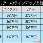 価格はハイブリッドが361万円から、2LのFF車が272万円、4WDが290万9000円から。