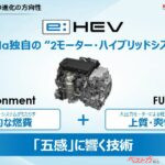 対するホンダのハイブリッドがe:HEV(イー エイチ イー ブイ)と命名されるシステムであり、こちらは全世界で高く評価され、実際にセールスも好調だという。