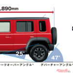 最終的にホイールベースは340mm延長され、2,590mmに設定。ホイールベースを伸ばすと車両のピッチング(前後の揺れ)が抑えられるので、オンロードでの乗り心地や直進安定性が向上するというメリットも生まれた。現行ジムニー/ジムニーシエラの完成度が高いだけに、このバランスを取るための設計判断は非常に難しかったという。