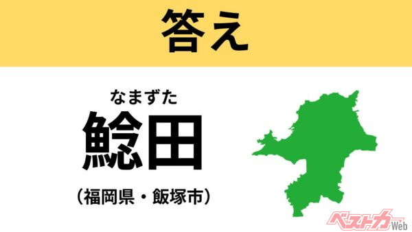 鯰田の正しい読み方は「なまずた」。「鯰」という字は、長いヒゲがチャームポイントの淡水魚、ナマズの漢字表記です(「鯰」のほかに「魸」と書かれることもあるみたいです)。