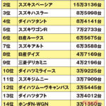 注目されるのは3位のハスラー。スライドドアを装着せず、全高も1700mm以下だが、SUV風の外観と水洗いの可能な荷室などによって販売が好調。スーパーハイトワゴンに比べて割安な価格も人気の秘訣となっている。