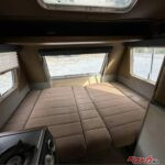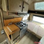 車両後方がベッドのスペース。4つ口のコンロやトイレ、冷蔵庫なども備わっている。