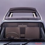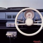 まんまるなヘッドライトに洒落たサイドミラー、フロントグリルの格子柄も相まって可愛らしさが先行するが、ボンネットからバックドアまで施されたボディラインは、どこか軍用車のような雰囲気を醸し出す。