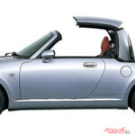 ドライバーを中央にアレンジし、ボディ感覚がつかみやすいパッケージングを実現した初代コペン。トランクルームはルーフクローズ時に210リッターの容量を誇り、日常ユースにも十分に応える収納性も実現していた
