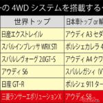文:国沢光宏、松田秀士、石川真禧照、斎藤 聡、鈴木直也、片岡英明/表の見方:6人の評論家がそれぞれ「世界トップ」と評価したものを表の左側に配置。右側は、「世界トップ」が日本車の場合は輸入車のトップ、輸入車の場合は日本車のトップを記載しています