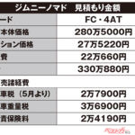 ノマド購入の意思を伝え、さっそく見積書を作成してもらった。選んだのは4ATのシフォンアイボリーメタリック/ブラック2トーン(メーカーオプション)。車両本体価格は275万円+5万5000円=280万5000円。これにディーラーオプションは表のとおりで、計27万5220円。
