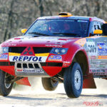 ご存知のように、増岡浩さんは世界一過酷なラリーと言われるダカールラリーの覇者である。パジェロを駆り、2002年と2003年に2連覇の偉業を達成した。