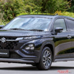 もう1台、黒色ボディカラーがカッコいい~! とシビれてしまうのがスズキフロンクス。小さくて使い勝手のいいクルマ作りを得意とするスズキが放つコンパクトSUVだが、上の画像のとおり、どこかマッチョさも感じるスタイル。