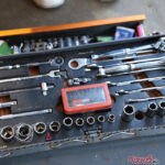 緑豊かなキャンパスを奥まで進むと野球場の先に自動車部のガレージが見えてきました。周辺には「自動車部あるある」の謎の不動車がいっぱい。年季を感じさせるガレージの中には拓大のスクールカラーであるオレンジのEG6シビックが収まっています。