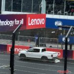 導入されたのは、日本では未発売のリッジライン。同車は中型サイズのピックアップトラックで、リヤバンパーにはブラシが装着されており、オイル処理車としての役割を担うためにサーキットデビューを果たしたという。