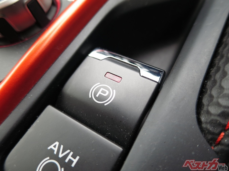 パーキングブレーキには「レバー式」に加え、足元にあるペダルを踏み込む「足踏み式」やハンドル下のグリップを引く「ステッキ式」などがあるが、近年はボタン操作で作動する「電動式」を採用するクルマが増えてきている。