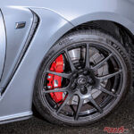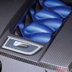 エクステリアではフロントスポイラー、大型ロッカーフィン、ルーフ、リアディフューザー、アクティブリアウイング(格納式)ルーフのカーボンパーツのほか、専用19インチ鍛造アルミ、レッドキャリパーなどで武装。
