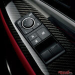 インテリアでは専用のブラック&フレアレッドのインテリアカラーを採用、オーナメントパネルにカーボンパーツがあしらわれる。