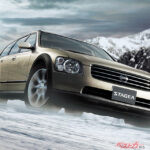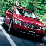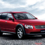 2代目ステージアのクロスオーバーSUVグレード。樹脂製オーバーフェンダーや18インチタイヤを備え、最低地上高は180mmに。