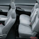 個性的なのはシートレイアウト。ミニバンというと一般的には3列シートモデルを指すが、エディックスは2列ながら横3座とすることで、最大6名乗車を可能にした。