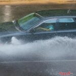 クルマを運転中に豪雨に遭遇したら、まずは車速を落とし、前走するクルマとの車間距離を十分にとりましょう。豪雨によって路面に水が溜まってくると、タイヤが路面にグリップしにくくなることからスリップしやすくなるほか、制動距離(ブレーキが作動し始めてからクルマが完全に停止するまでの距離)が延びたり、最悪の場合、クルマが制御できなくなるハイドロプレーニング現象(水膜の上にタイヤが浮いてしまう現象)に陥ってしまう可能性もあります。