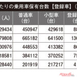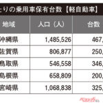 だが、6番目に人口が少ない山梨県の登録車保有台数が全国で6番目に多いという事実を鑑みるに、ここに挙がった各県には一層の奮起も期待したい。