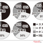 そんな沖縄県をテール・トゥ・ノーズで追っているのが「ケチ」という県民性が秘かに噂される佐賀県で、3位は鳥取・島根・宮崎の各県が同率で並んだ。