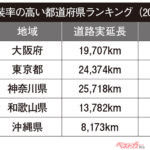 だが大阪府は税収不足の関係で、路面標示の塗装補修が追いついてないとの情報もある。続く東京都と神奈川県の舗装率の高さは想定の範囲内だが、4位には和歌山県が衝撃のランクイン。