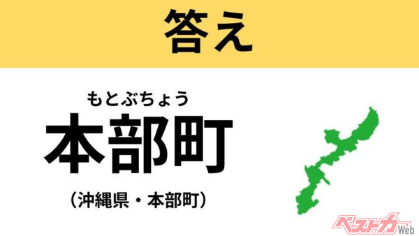 本部は「もとぶ」と読むのが正解。「ほんぶ」や「もとべ」などの読み方は誤りです。「美ら海水族館」があることで有名な町です。