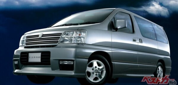 日産エルグランドは商用車のキャラバン/ホーミーをベースとして開発され、1990年代当時は珍しかった、高級ミニバンのジャンルを切り拓いた名車です。