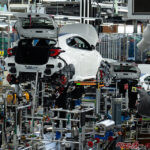 一般的な生産ラインでは、ベルトコンベアや吊り下げ式の大型搬送機を使ってクルマが作られるが、セル生産ではアンダーボディ溶接工程や足回り搭載工程といった生産単位ごとに分け、各セルに作業員が配置される。