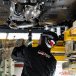 足回り部品の搭載は吊り下げて行われることが多いが、こちらも精度を上げるためにリフトアップしたボディの下に足回り部品を正確にセットし、ボディを上から丁寧に降ろしていくのもGRファクトリーの特徴だ。