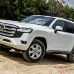 ランドクルーザーシリーズの最上級車種で、全長は約5m、全幅は約2mに達する。大柄なボディは存在感も強く、最低地上高は225mmだから、悪路のデコボコも乗り越えやすい。