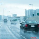 大雨の高速道路では、第二走行車線の真ん中を走ることを心がけよう。もし、二車線しかない場合は、走行車線の真ん中を走るように心がけたい。