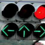 まず前提として、青矢印の意味をおさらいしましょう。青矢印信号は、赤信号の状態でも「指定方向への進行」を可能にする特例の信号です。ここに記載するまでもないかもしれませんが……。