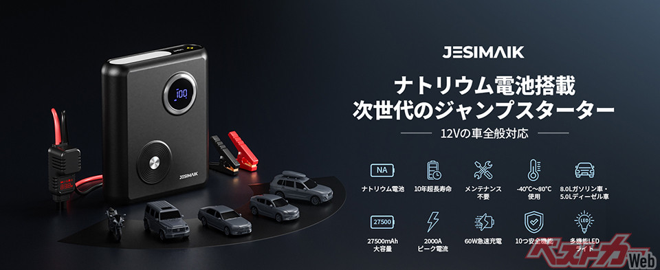新しモノ好きの私ということで、すでにナトリウム電池を持っています。バッテリー上がりに使う携帯ジャンプスターター(JESIMAIKというメーカー)の電池が業界初のナトリウムなのだった。確かに3元系より大きくて重いものの、耐久性と安全性が圧倒的だったりする!