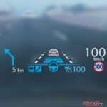 走行中のフロントガラスに、スピードやナビのルートなどを投影するシステムがヘッドアップディスプレイ。