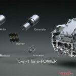 e-POWERユニットも劇的に進化した。モーターと発電機、インバーター、減速機、増速機という部品をひとつのケース内に統合してコンパクト化するいっぽう、モーターの最高出力は11kW高めて151kW(約205ps)としている。