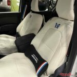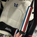 しかも内装もハンパなく、特注のシートカバーが世界観にピッタリな仕上がり。注目はシートベルトカバーとクッションだ。