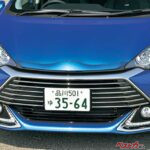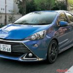 何よりもエクステリアが刺激的。燃費がよくて、万人受けするデザインのノーマルアクアとまったく違うエクステリアは迫力満点。大きな開口部のフロントグリルは横桟のルーバーが張り巡らされ精悍な顔つきに仕上げられている。
