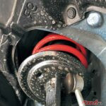 サスはノーマルよりは締め上げられていて硬めだが、ガチガチのサーキット仕様というのではなく、縮み側と伸び側の両面をファインチューニングしているから、街中での乗り心地もフラットで快適。胃袋が動くようなゴツゴツ感は皆無。