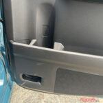収納設備も豊富で、助手席の下に大型ボックスが備わる。ハンドルが付くから車外にも持ち出せる。後席のドアには傘立ても装着した。後席のドアも横開きだが、開口角度が大きく乗降性が優れている。