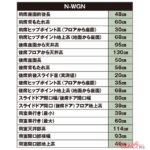 荷室容量は各車種ともに充分だ。特にN-WGNのプラットフォームはN-BOXと共通で、燃料タンクを前席の下に搭載する。そのために荷室開口部地上高が低く、N-BOX同様50cm未満だ。床が低いためにハイトワゴンだが荷室天井部高は114cmと余裕があり、荷室を棚のように上下2段に分けて使える。