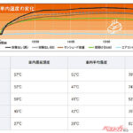 2012年8月にJAFが埼玉県で行った別のユーザーテストでは、気温35℃の炎天下に置かれた黒いボディの車内が最高57℃、ダッシュボードに至ってはなんと79℃まで上昇。もはやサウナどころじゃない。