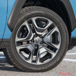 特に記者会見で235/65R18のオールテレーンタイヤを履かせていたアドベンチャー仕様のタイヤ外径は760mmオーバー。国産SUVの常識を塗り替える大きさだ。