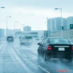 そのため、そのような状況に遭遇したら、まずは前走車との車間距離を十分にとって、できれば一番左の第一通行帯を通行するようにしてください。前走車との車間距離をとることで、前走車が巻き上げる水しぶきをある程度回避することができますし、第一通行帯を走行することで、対向車からの水しぶきによる影響も受けにくくなります。